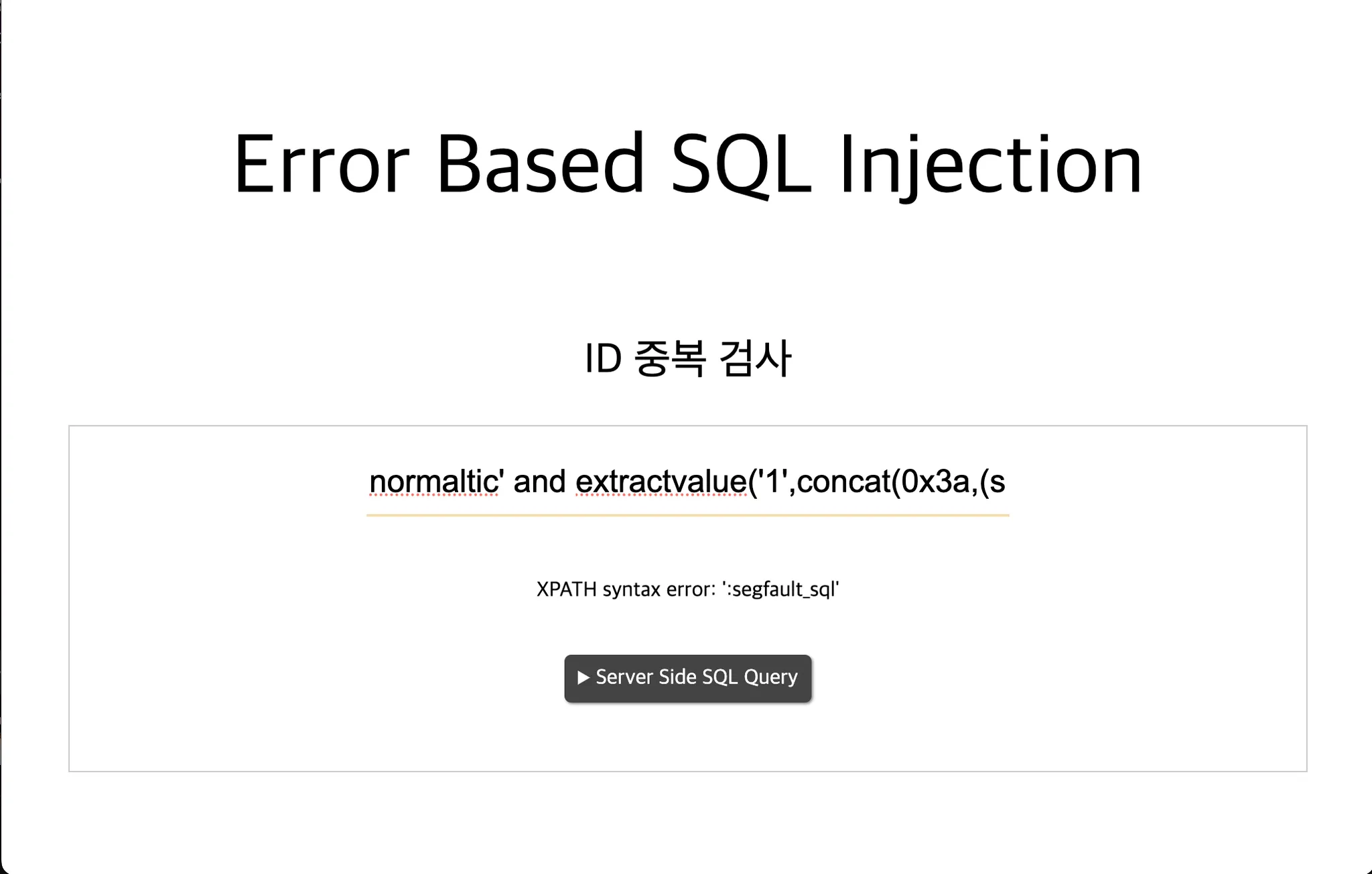 - DB의 종류마다 다르기 때문에 탈취하고자 하는 DB의 종류를 파악한 뒤 에러출력 함수를 대입하면 된다.